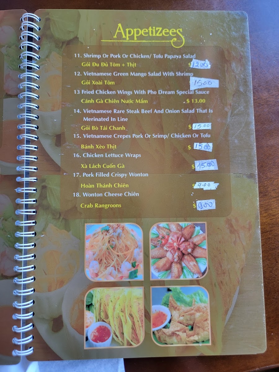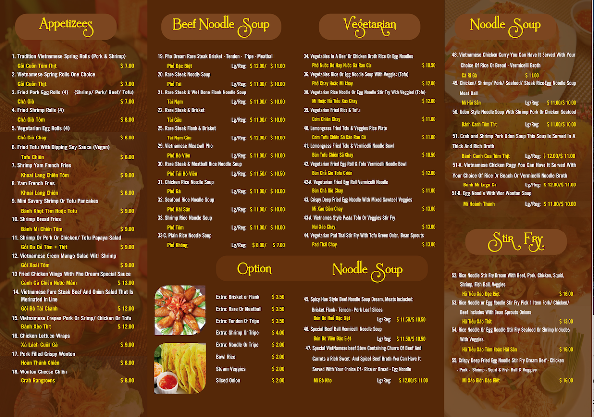 Pho Dreams Menu